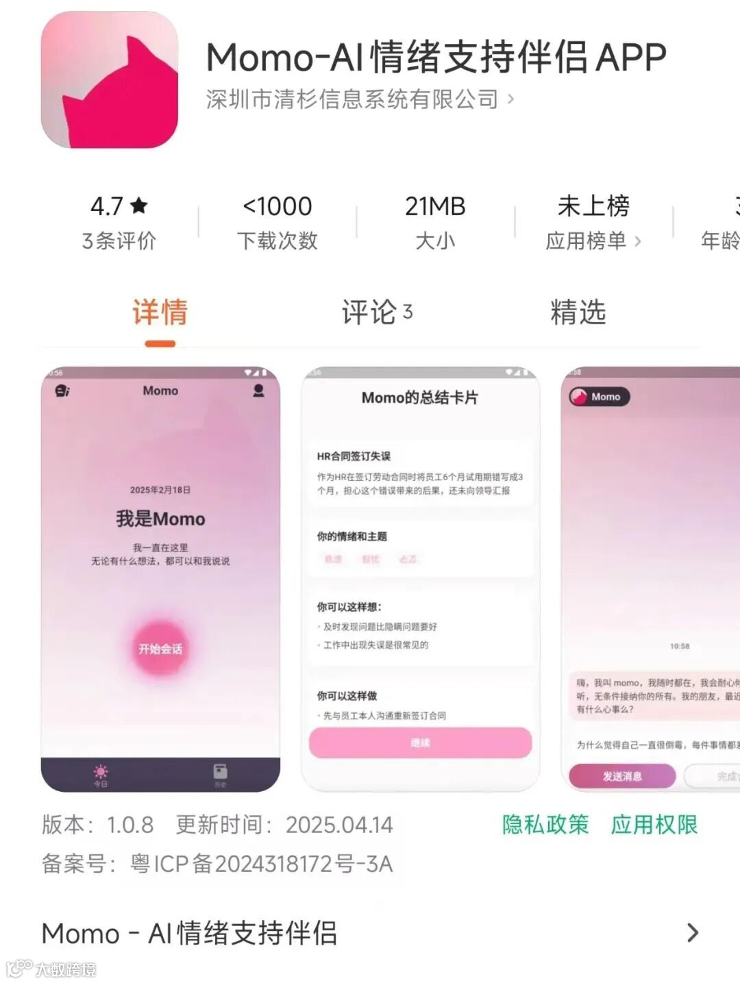 在 AI 市场中,中小创业团队和独立开发者的处境更为艰难。AI 陪伴赛道竞争尤为激烈,尽管对标 Character.Al 的产品层出不穷,但真正能站稳脚跟的寥寥无几。2025 年初,「幻幻 AI」和「纸飞机 AI」相继停运。主打小众赛道的「momoAI 情绪伴侣」,作为 AI 树洞类 APP,在 2025 年 4 月还进行了版本更新,却在 5 月底突然停止运营,让习惯在此倾诉的用户猝不及防,只能匆忙在社交平台寻找替代品。