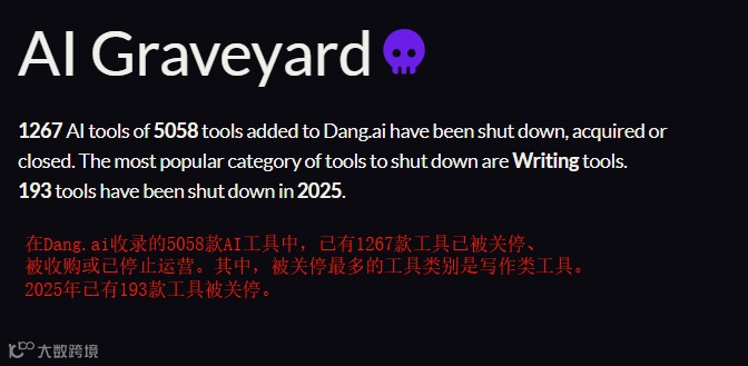 在 AI 工具聚合网站 “DANG!” 的 AI Graveyard 项目中,记录着海外停运的 AI 软件。截至 2025 年 6 月 13 日,已有 1267 款 AI 软件停运,其中 AI 写作类应用占比最大。这类应用虽契合大模型技术特点,但由于底层大模型能力趋同,产品缺乏差异化,极易被模仿,陷入低水平竞争的恶性循环。前文提到的众多 AI 陪伴类应用,同样面临依赖底层大模型、同质化严重的问题,只是简单模仿现有成功模式,既缺乏创新,也未能真正满足用户需求。