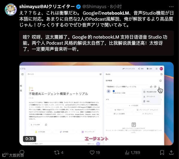 随着NotebookLM的走红,关于“AI是否威胁播客行业”的讨论从未停歇。反对者担忧大量AI生成的低质量内容会淹没市场,支持者则认为技术解放了创作生产力。事实上,NotebookLM生成的内容自带“合成水印”,且用户更多将其用于个人学习、团队内部交流等“非商业场景”——比如将会议纪要转化为播客方便复盘,或把小说草稿交给“主持人”提建议,这些都是传统播客难以覆盖的细分领域。