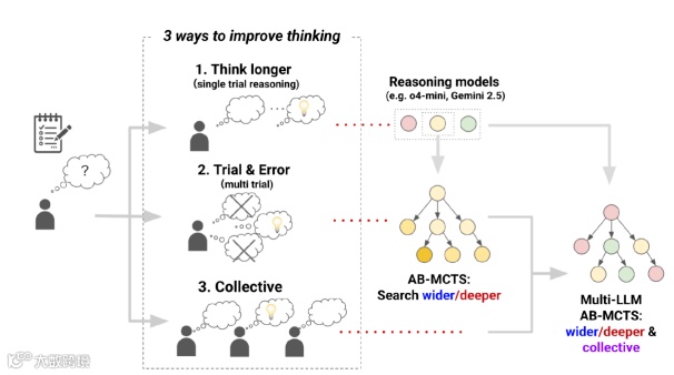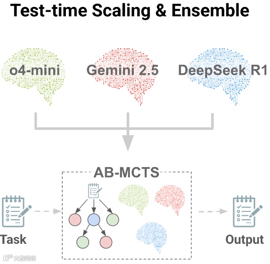 在日本 Sakana AI 公司的研发实验室里,“三个臭皮匠顶个诸葛亮” 这句蕴含东方智慧的谚语正被赋予全新的技术内涵。由 “Transformer 八子” 之一 Llion Jones 联合创立的团队,于 2025 年 7 月公开的自适应分支蒙特卡洛树搜索算法(AB-MCTS),首次让 Gemini 2.5 Pro、o4-mini、DeepSeek-R1-0528 等前沿大模型实现了类人化的协同推理。这种突破传统单模型架构的集体智能系统,在被誉为 “AI 抽象推理考场” 的 ARC-AGI-2 基准测试中,以 30% 的 Pass@250 成功率证明:当不同模型的优势通过算法实现有机融合,其协作效能远超任何单一系统的能力边界。