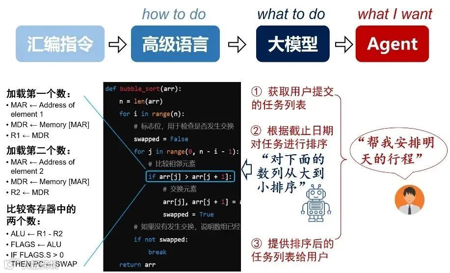 早期 Agent 如 IFTTT 的自动化规则,本质是脚本化的功能封装,需用户明确定义 "如果 - 那么" 逻辑。2025 年的新型 Agent 已具备完整的 "感知 - 决策 - 行动" 闭环:Salesforce 的 Einstein Agent 能分析客户邮件的情绪指数,自动生成跟进策略并触发 CRM 系统操作;Notion 的 AI 助手可根据用户输入的会议纪要,智能提取行动项、分配责任人并同步到日历。
