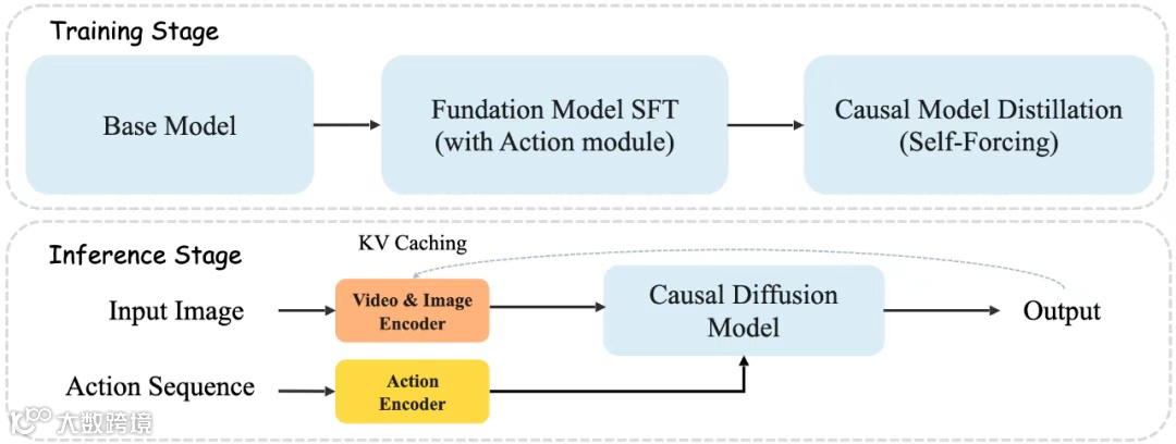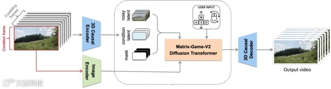 在架构设计上,模型以图像为核心,由三大组件构成。3D Causal VAE 压缩结构从空间和时间双维度对视频实现高效压缩,在保留关键信息的同时降低计算成本。多模态扩散 Transformer(DiT)融合视觉编码与用户操作指令,逐帧生成符合物理规律的动态视频序列,再通过 3D VAE 解码为完整画面。动作控制模块借鉴 GameFactory 与 Genie 系列的交互框架,引入帧级别的键盘和鼠标输入,实现即时操控与世界生成的无缝衔接。