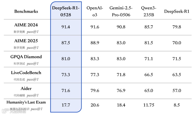 在人工智能领域,模型迭代往往伴随着参数规模的膨胀与架构的重构。然而,深度求索(DeepSeek)近期发布的DeepSeek-R1-0528却打破了这一常规。这个被官方称为“小版本更新”的模型,通过后训练策略的优化,在多个基准测评中实现了性能跃升,甚至在某些领域逼近OpenAI的o3和Google的Gemini 2.5 Pro等顶尖闭源模型。这场看似“小步快跑”的升级,实则揭示了大模型发展的新范式——通过精细化训练而非单纯依赖参数扩张,同样能释放出惊人潜力。