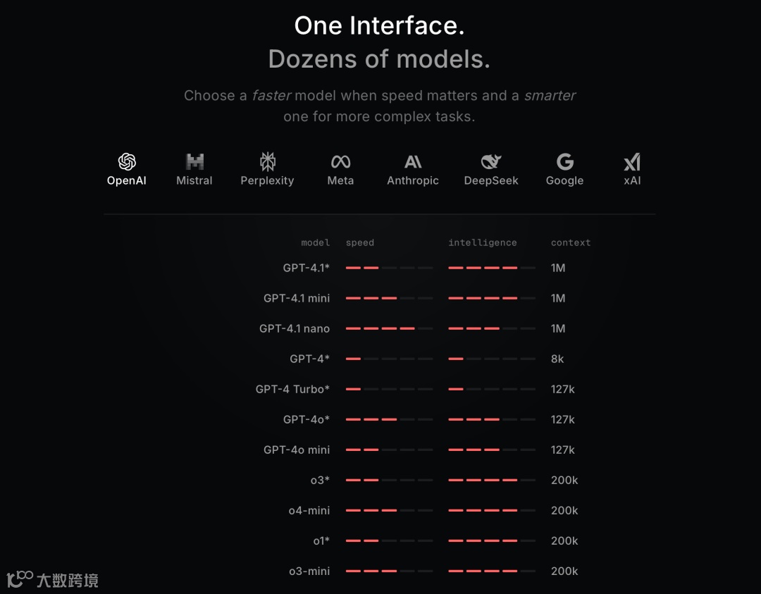2023 年,Raycast 推出了 Raycast AI 功能,并在 2024 年将其逐渐深度整合进操作体验,这让它在众多效率工具中脱颖而出。Raycast AI 支持几乎所有主流大模型及不同版本,用户可根据任务需求自由切换。需要复杂逻辑推理和高质量文本生成时选 GPT-4o,需要更强创造力和长上下文理解时选 Claude 3.5 Sonnet ,且每个模型的反应速度、智能水平等信息都会直观显示,方便用户选择。