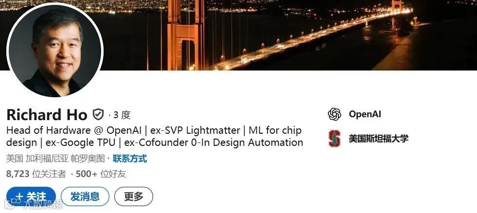 Richard Ho 在谷歌有着近九年的深耕经历,全程深度参与了 TPU 系列从无到有的研发历程,处于高级工程总监这一关键岗位,对 TPU 技术可谓了如指掌。离开谷歌后,他在 Lightmatter 担任 VP,积累了更多行业经验,于 2023 年正式加盟 OpenAI。他的到来,似乎也为 OpenAI 与谷歌在芯片领域的 “牵手” 埋下了伏笔。