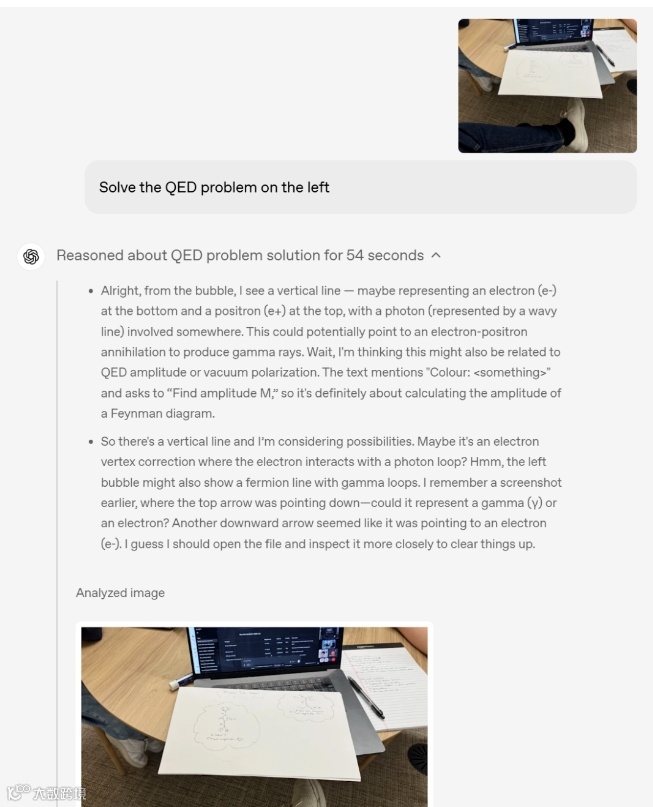 此次发布最引人注目的,是模型首次实现 "图像融入思维链" 的能力。不同于传统模型仅能描述图像内容,o3 与 o4-mini 能够对视觉输入进行深度推理:无论是倒置的白板照片、模糊的手绘草图,还是复杂的工程图纸,模型都能通过内置工具进行预处理(如调整对比度、识别边缘),提取关键信息后与文本知识结合分析。例如,用户上传一张包含数学公式的草稿纸照片并提问 "该公式是否适用于量子计算场景",o3 会先识别公式内容,调用数学库验证其正确性,再检索相关领域文献,最终给出包含公式推导与应用场景的详细回答。