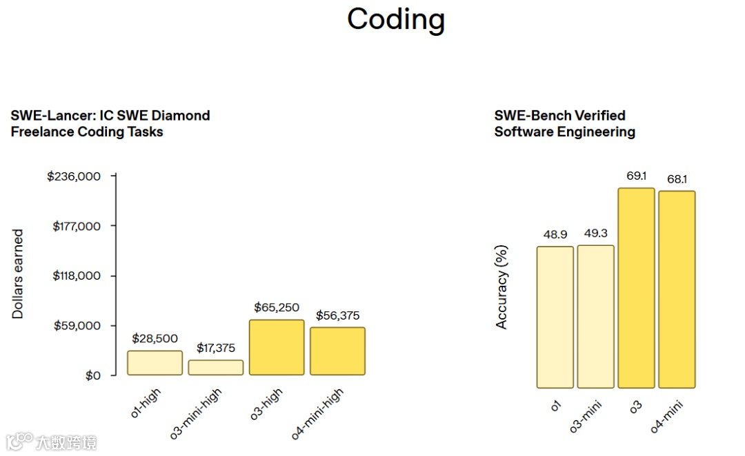 o4-mini 则聚焦高效推理,在保持低成本优势的同时实现性能跃升。这款小型模型在 AIME 2024 和 2025 数学竞赛基准测试中表现最佳,非 STEM 任务处理能力较 o3-mini 提升 40%,支持的并发使用量比 o3 高出 50%,成为高吞吐量场景(如实时数据分析、教育答疑)的理想选择。两者共同展现出 OpenAI 在 "计算效率 - 模型性能" 平衡上的突破 —— 同等算力下,o3 的推理速度比 o1 快 25%,而 o4-mini 的单次调用成本仅为 o3-mini 的 60%。