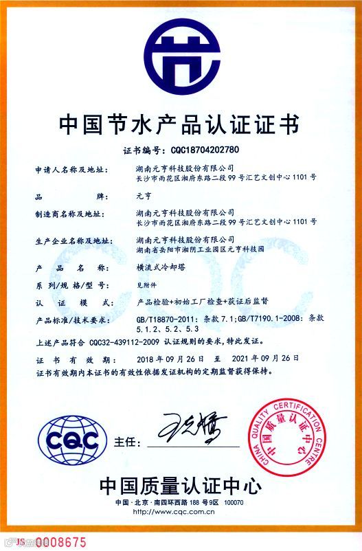 节水是我国当前进行可持续发展的重要举措,国家级检测机构检测飘水率低达0.000092%,YHW系列有154个型号取得中国节水产品认证。