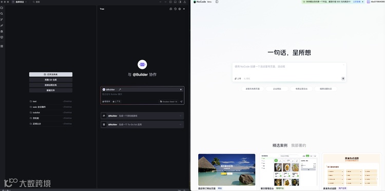 美团 - Nocode:专注于 “Vibe Coding” 理念,通过自然语言多轮对话生成可部署的应用程序。美团即将对 UI/UX 进行升级,强化协同编辑与后端能力,并构建极速调度容器系统,实现依赖安装、数据存储的秒级响应。
