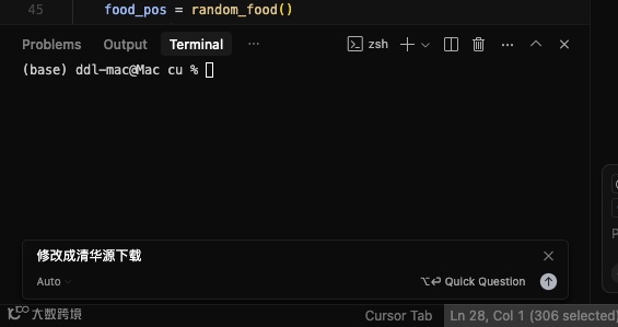 其次,AI 的交互方式设计至关重要。这三者都提供了两种核心功能:在右侧 Chat 栏进行问答式交流,如同使用一个智能聊天助手;以及在代码编辑器中,支持用户选中代码片段,直接调用 AI 进行修改,或将其关联至 Chat 栏进行深入讨论。细微的差异在于,Cursor 具有独特的功能,它支持在终端(Terminal)内直接与 AI 对话。例如,国内 Python 用户若想将包下载源切换至清华镜像,通常需记忆复杂的命令。在 Cursor 终端中,只需输入 “把下载源改成清华源”,AI 便能自动生成并执行相应命令。而在 Trae 中,同类操作仍需跳转至 Chat 栏完成。此外,模型生态也略有不同:Lingma 主要集成通义千问(Qwen);Trae 和 Cursor 则提供了更丰富的模型选择,并支持用户接入自定义模型。