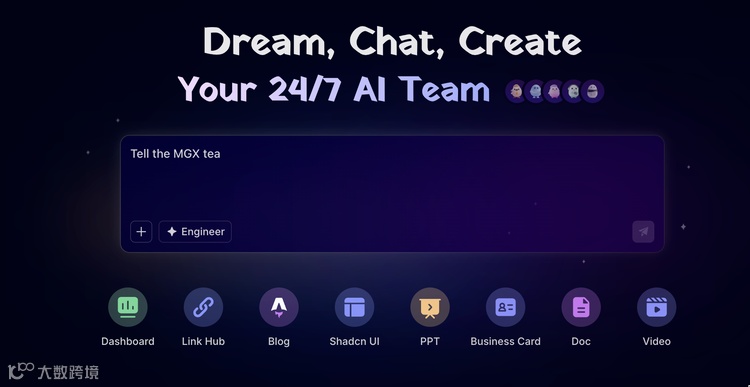 MGX (MetaGPT - X):基于 MetaGPT 框架的 AI 编程利器,通过多智能体协作实现软件开发全流程自动化。它拥有一个分工明确的五人 AI 团队:产品经理 Emma、架构师 Bob、工程师 Alex、数据分析师 David 和团队领导 Mike。从需求分析到代码实现,全程无需手动编码。用户只需用自然语言描述需求,MGX 就能快速生成完整的全栈应用程序。