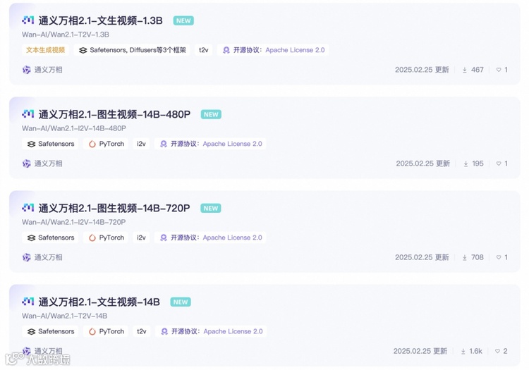 相比于代码能力更强的语言模型,或是让开发者兴奋的底层代码库,万相 2.1 这样的视频生成模型显然更能抓住普通人的眼球。秉持着 “能开尽开” 的风格,阿里此次开源了 14B 和 1.3B 两个参数的全部推理代码和权重,同时支持文生视频和图生视频任务,全球开发者可在 Github、HuggingFace 和魔搭社区下载体验。并且,采用最宽松的 Apache2.0 协议,意味着生成的内容版权完全归开发者所有,可用于免费渠道,也能商用。