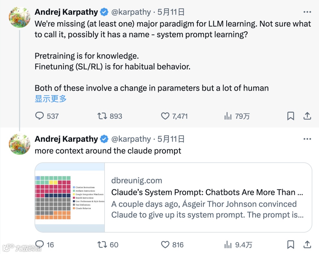 OpenAI前联创Andrej Karpathy提出的“系统提示词学习”概念,则为AI的自我进化提供了新思路:通过将解题逻辑写入提示词,AI可以实现更高效的任务复用,例如将“统计字数”的操作步骤固化为提示词,使模型在面对类似任务时能快速调用预设逻辑,避免重复训练。
