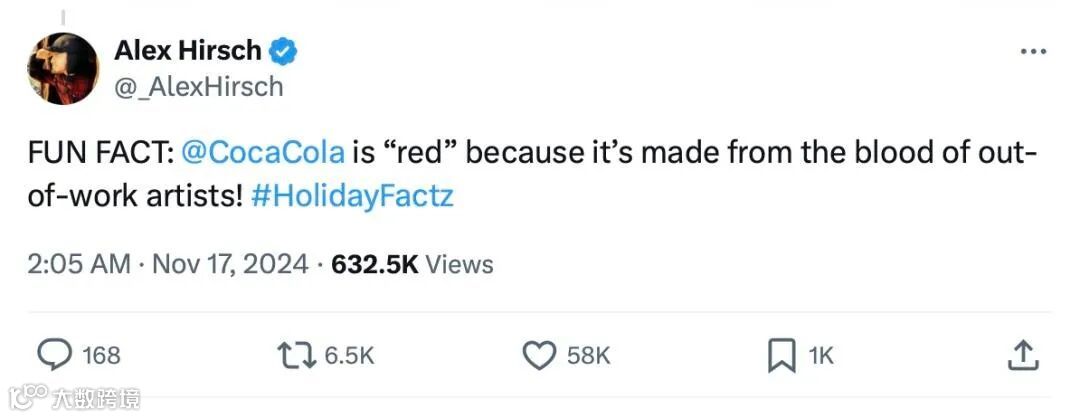 2024年11月19日,可口可乐发布了首支全AI生成的圣诞广告《假日魔法来了》。这条时长三十秒的广告由Real Magic AI生成,内容致敬了1995年的经典广告《Holiday is coming》,但画面和人物全由AI打造。这本该是一次颇具开创性的尝试,可结果却不尽如人意,在社交媒体上遭到了网友的猛烈抨击。