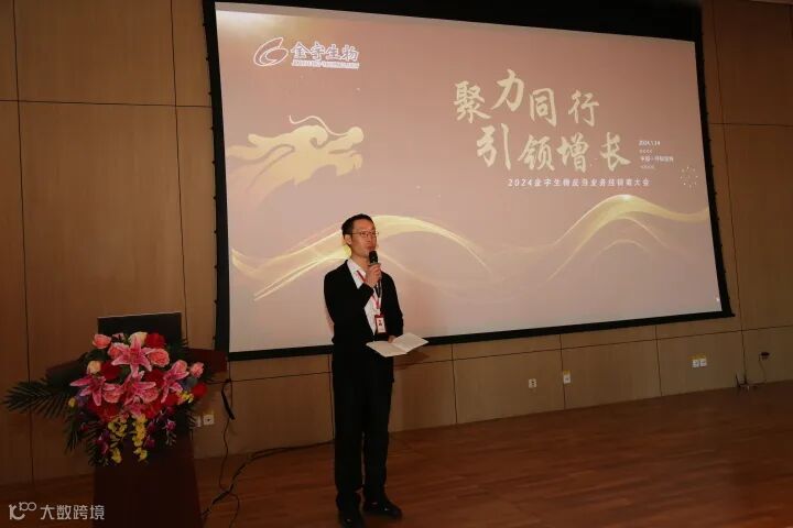 会议在营销中心总监林海的致辞中拉开序幕,致辞中提出2024年金宇生物的工作举措,新的一年希望金宇生物与经销商伙伴一起协同作战,再越高峰!
