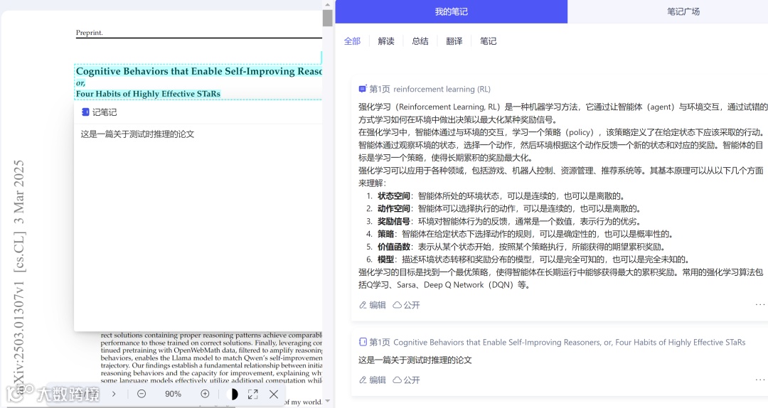 划词解析功能则成为领域新人的「智能导师」,当用户点击专业术语时,系统不仅呈现即时定义,还会关联该概念的学科背景、经典文献甚至前沿研究,形成「术语-知识-文献」的立体认知网络,帮助研究者快速建立领域知识框架。动态笔记体系更是将阅读与沉淀无缝结合,无论是用户手动标注的重点、AI生成的内容总结,还是即时迸发的研究灵感,均可自动归类为结构化笔记,并支持导出为多种格式,避免了传统笔记工具中「二次整理」的时间损耗,让知识积累成为阅读过程的自然延伸。