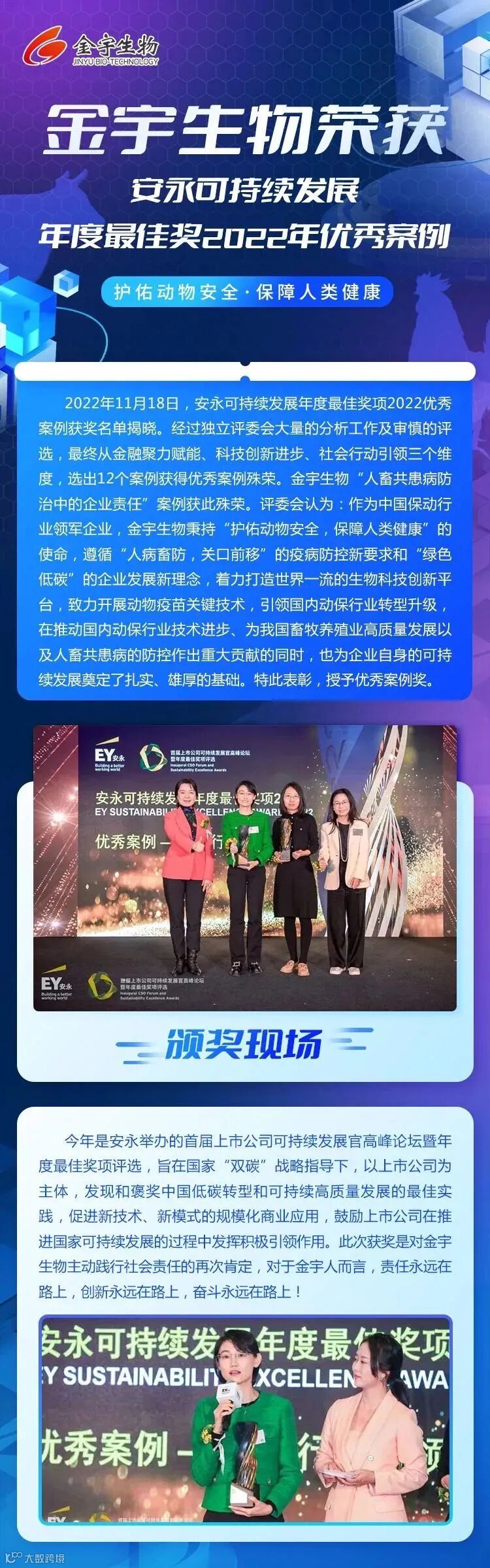 金宇生物荣获安永可持续发展年度最佳奖2022年优秀案例