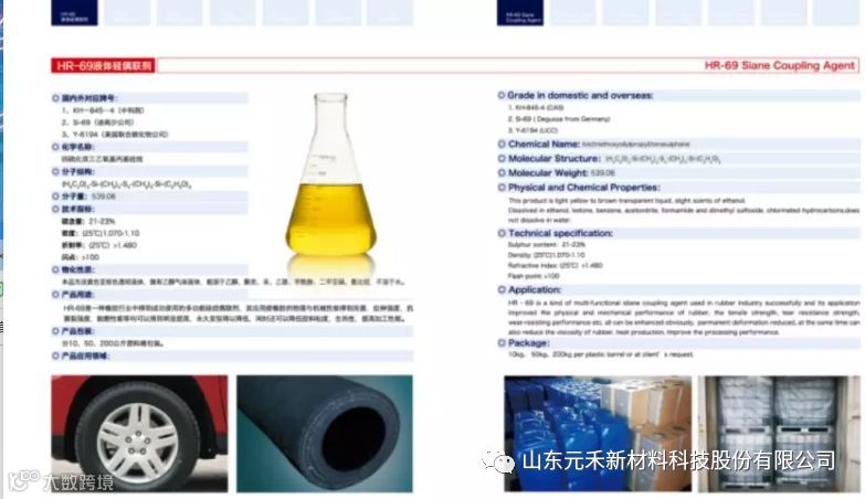 HR-69是一种橡胶行业中得到成功使用的多功能硅烷偶联剂,其应用是橡胶的物理与机械性能得到完善,拉伸强度,抗撕裂强度,耐磨性能等均可以得到明显提高,永久变形得以降低,同时还可以降低胶料粘度,生热性,提高加工性能。