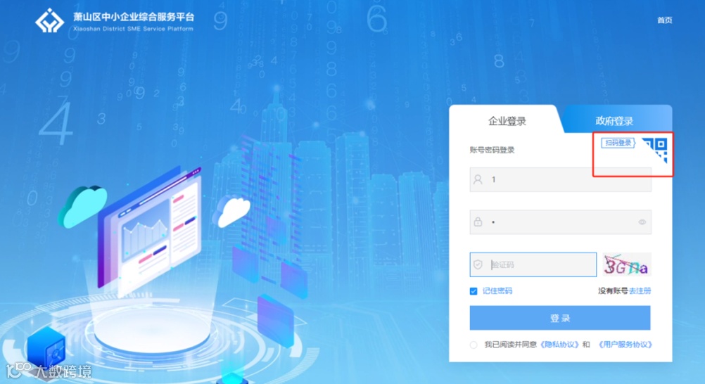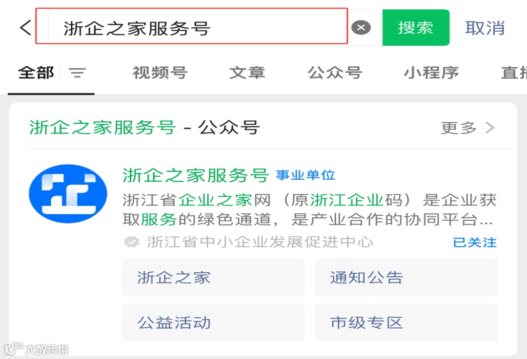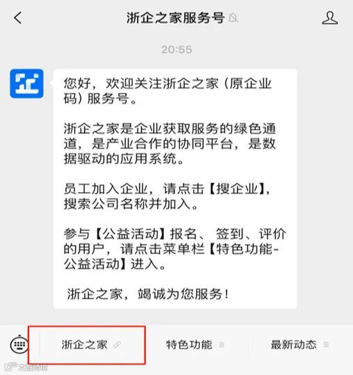 对于已有企业码企业,点击平台首页右上角“企业/政府登陆”按钮,选择“扫码登录”,通过微信搜索“浙企之家服务号”公众号并关注,点击左下角“浙企之家”,扫一扫平台二维码即可登录。