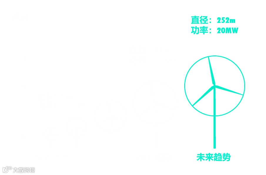 随着功率增加,风力发电机越来越高,叶片越来越大。2021年上半年推出的近60款风机,整体高度均超过200m,预计到2030年,将进一步升高至300m。
