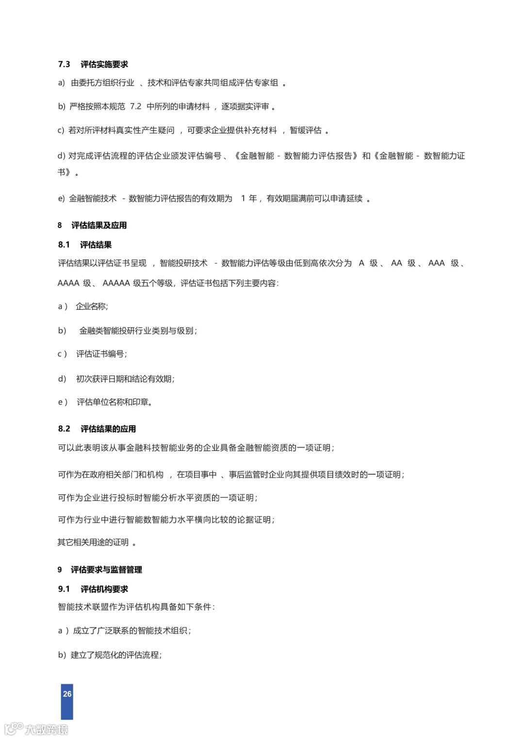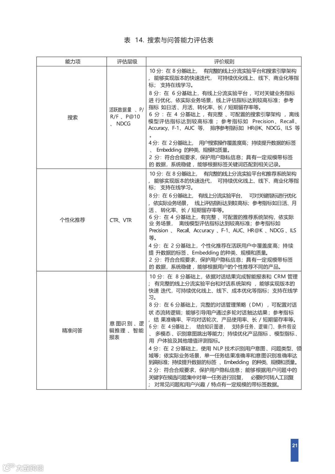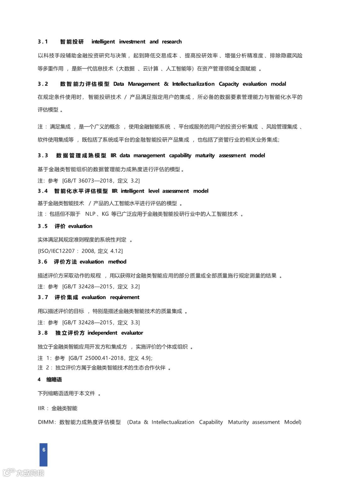 本研究报告以国家对信息技术 、软件 、大数据 、人工智能、社会治理的相关政策 ,结合金融类数智行业 、技术与社会发展的实践,对金融领域企业、科技型企业等在数据管理能力 、智能化水平、社会贡献度等方面提出要求 ,并对评估过程提出了规范性要求 ,为从事数字化智能化的企业提供了技术成熟度参考规范 ,也为金融 、券商 、政府相关管理部门提供了评价依据。