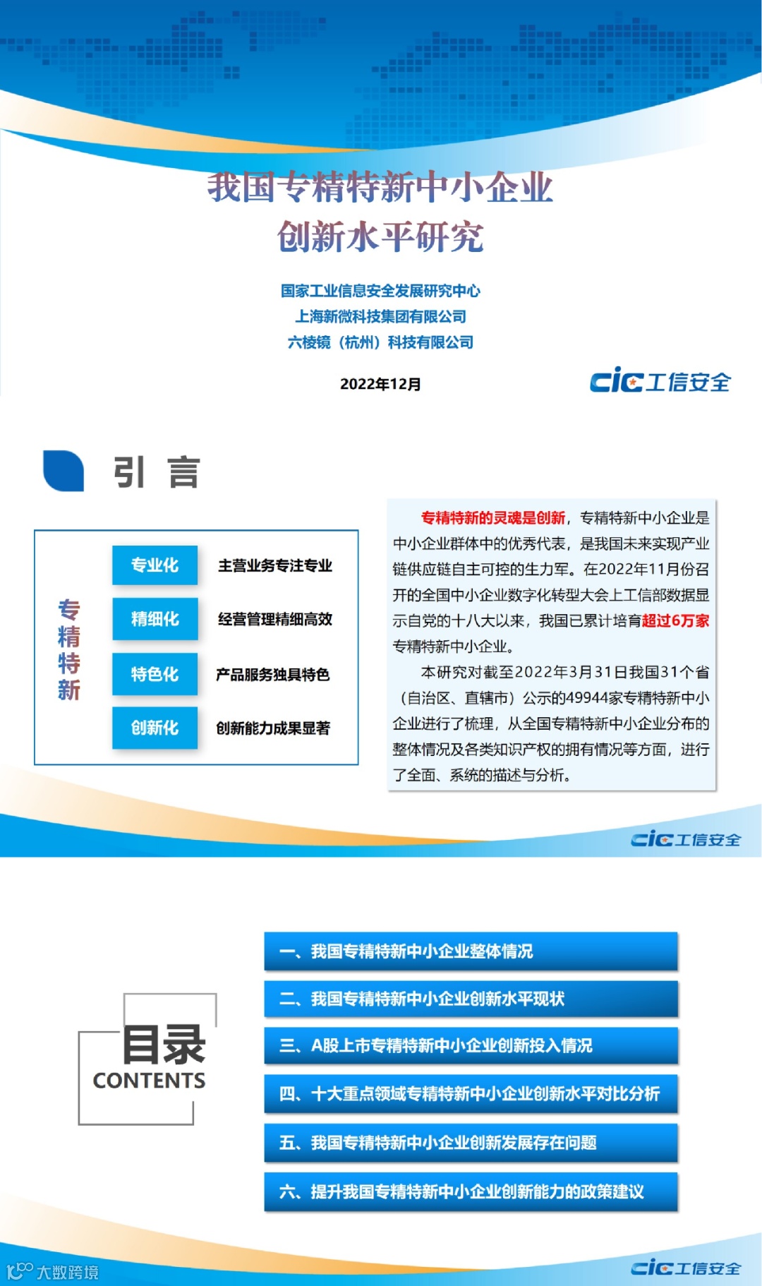 近日,第二十四场“工信安全智库”系列报告在线发布了《我国专精特新中小企业创新水平研究》。