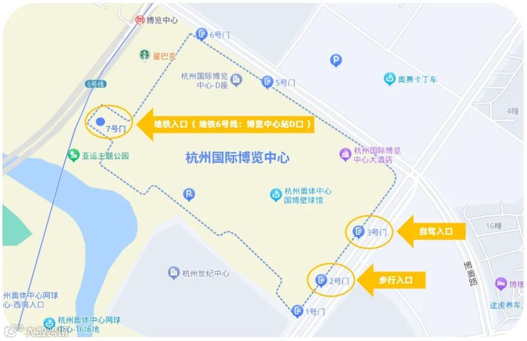 步行从2号门进入,沿外部阶梯步行至杭州国际博览中心二层C9入口,再沿指引牌步行至扶梯上三层,通过安检闸机后进入展馆观展。