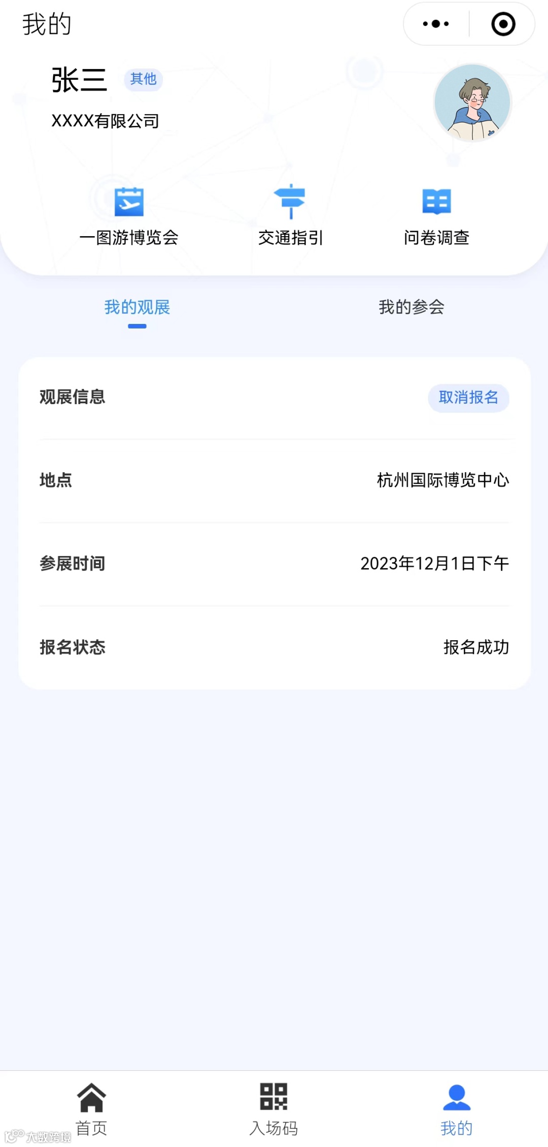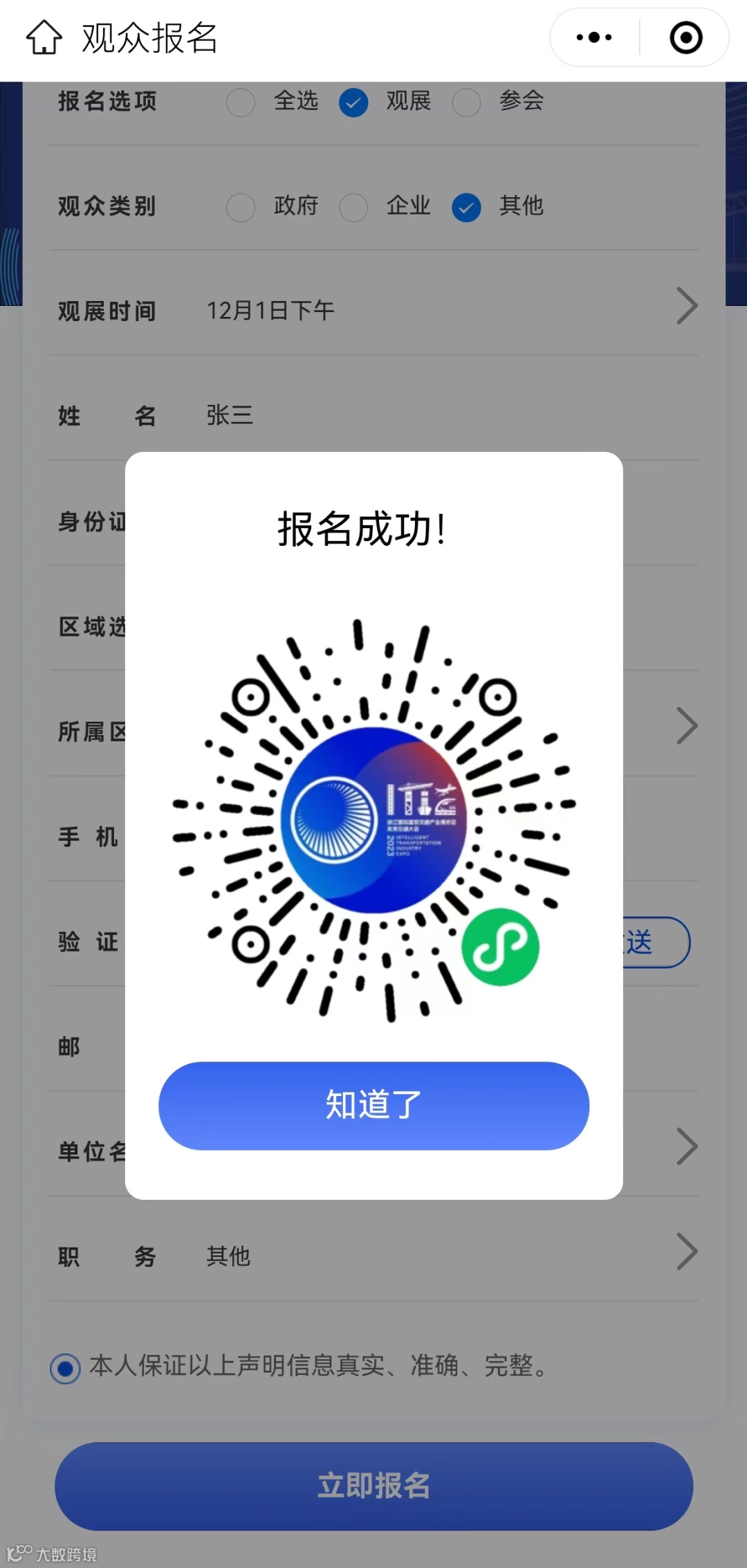 报名成功后,即可获取“入场码”。博览会期间,观众在三楼入口闸机处,出示“入场码”或身份证即可顺利通行。