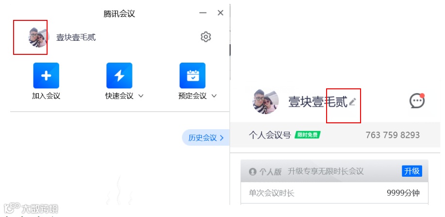 3、进入腾讯会议,点击左上角头像,修改用户名(使用参赛项目名称)