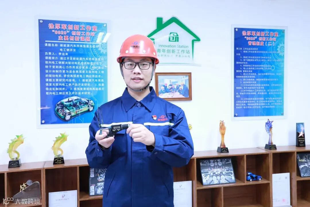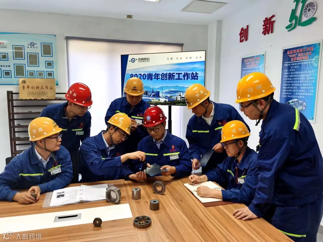 例如新能源汽车驱动电机的材料。在日常行驶中,新能源汽车需要高速旋转,如果材料强度不够,在离心力作用下,容易发生破坏,因此对材料屈服强度要求很高,这就需要添加很多硅元素。但过多的硅元素,会导致材料塑性急剧降低,甚至原料带钢空过卷取时发生破坏性断裂。徐厚军和团队成员通过创新实现了该类产品的一次试制成功,助力两款产品全球首发。经过徐厚军和团队合力研究,在轧制温度控制、压下率等方面进行持续改进,实现了该类高端产品的批量稳定轧制,掌握了核心制造技术,为首钢产品在新能源市场的拓展打下了坚实基础。