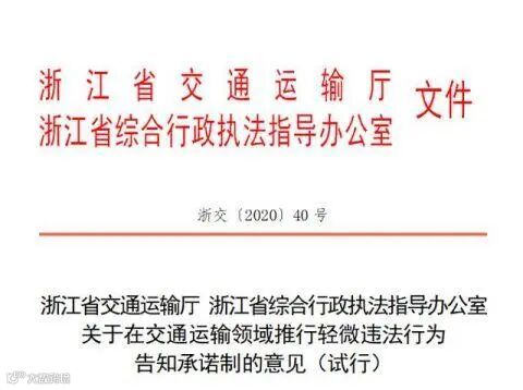 5月28日,浙江省交通运输厅、省综合行政执法指导办公室联合印发了《关于在交通运输领域推行轻微违法行为告知承诺制的意见(试行)》(以下简称《意见》),全国首推交通运输领域轻微违法行为“首错免罚”制度,在建设“重要窗口”中彰显“先行官”的担当作为。此举是浙江省在交通运输领域深化“放管服”改革,优化营商环境,推动交通运输高质量发展的重要举措。