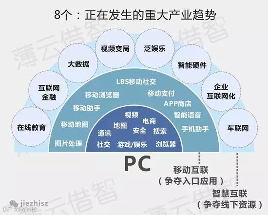 | 从1994年4月中国首次实现与国际互联网的完全连接,到如今2015年互联网时代的风起云涌,短短的21年,互联网已经如此大地改变了我们的生活方式。而现在,互联网的发展趋势又有哪些?在未来,它会如何进一步改变这个世界? 互联网用户向移动端迁徙已成定局 ![]() PC -> 移动 -> 智慧互联 ![]() 车联网正在无声改变出行 ![]() 在线教育涌入江湖 ![]() 大数据呈现一片蓝海 ![]() 视频变局正在发生 ![]() 泛娱乐开始萌芽 ![]() 智能硬件如雨后春笋 ![]() 企业互联网化范围逐渐延伸 ![]() 互联网金融势不可挡 ![]() |