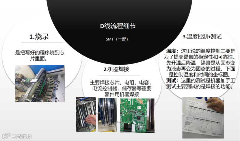 这次参观涵盖了一个产品制作的整个流程,包括烧录、焊接、测试、打流、包装、出库等等。短短一天的时间,我们见证了公司的产品从一个个小零部件被制作成产品,再到完整包装出库的全过程。