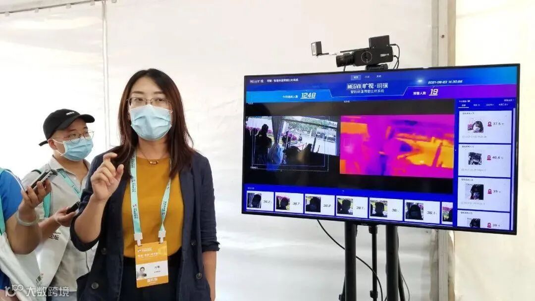 在论坛的注册台前,智能安检测温系统可实现安检、测温一体“秒过”。该系统用于在安检处快速核验个人健康防疫信息,一秒钟之内可完成身份识别、智能测温等7项信息的查验。