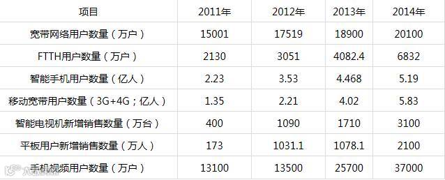 宽带网络用户和移动终端用户数量