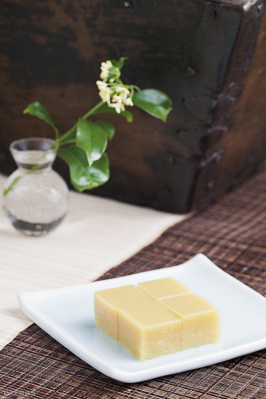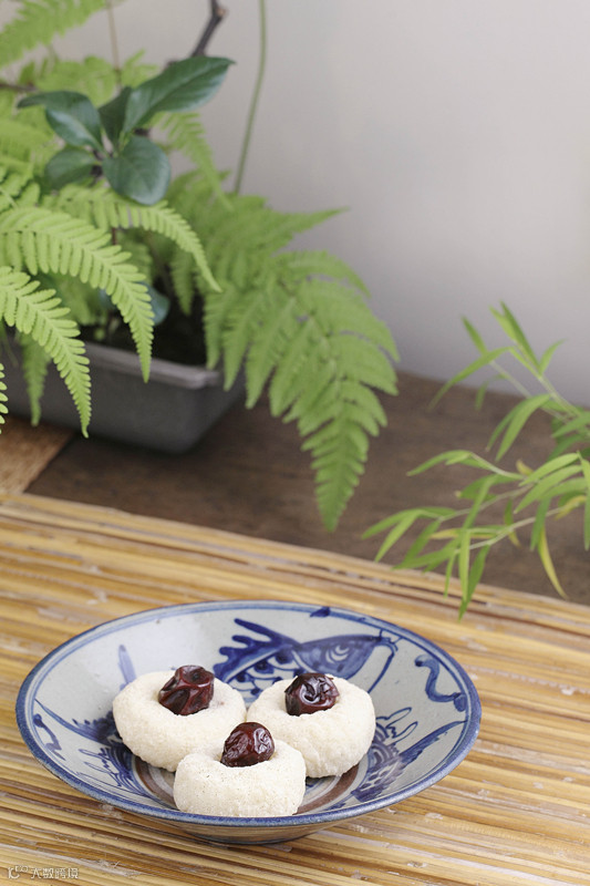 每年农历春节前后,北京的小吃店要上这个品种,一直卖到夏末秋初。艾窝窝特点是色泽洁白如霜,质地细腻柔韧,馅心松散甜香。老北京的传统艾窝窝上面插枣,寓意甜美。