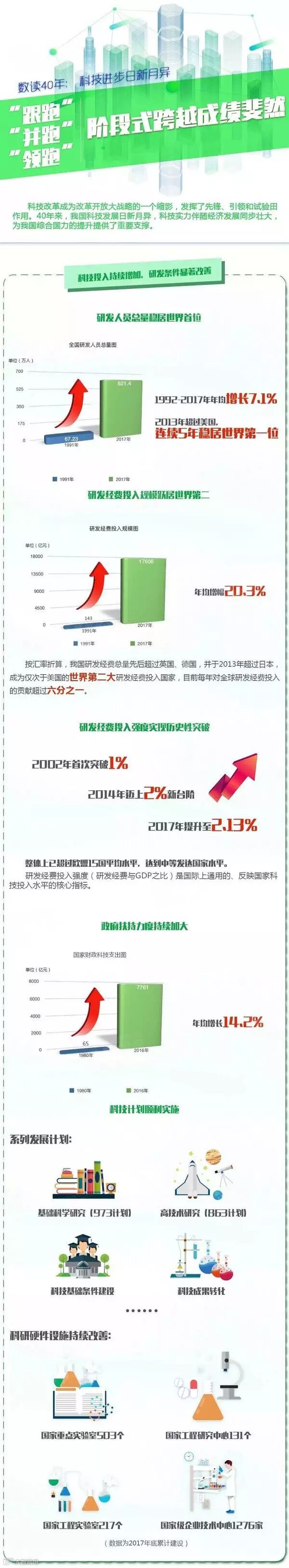 科技改革成为改革开放大战略的一个缩影,发挥了先锋、引领和试验田作用,40年来,我国科技发展日新月异,科技实力伴随经济发展同步壮大,为我国综合国力的提升提供了重要支撑