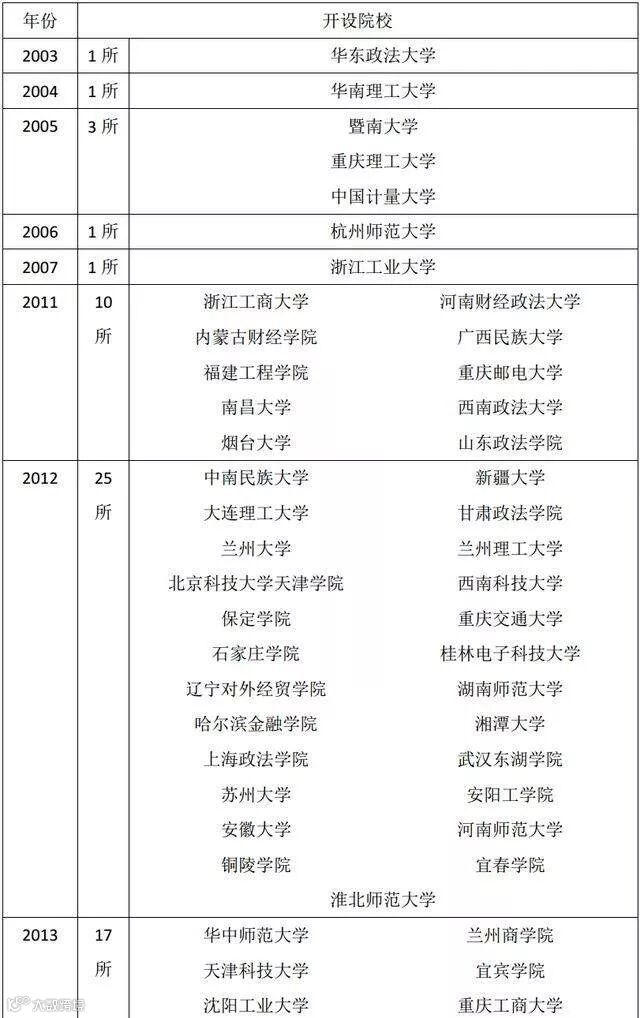 往年高校开设了知识产权专业(71家):