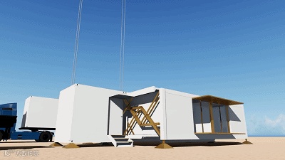 其实,这个模块化房屋就是大大小小的集装箱。而集装箱内所有的内部配件和固定装置都会预先安装,更重要的是这个模块化系统是可逆的,这就意味着它同样可以通过折叠回单元箱之后移动位置。