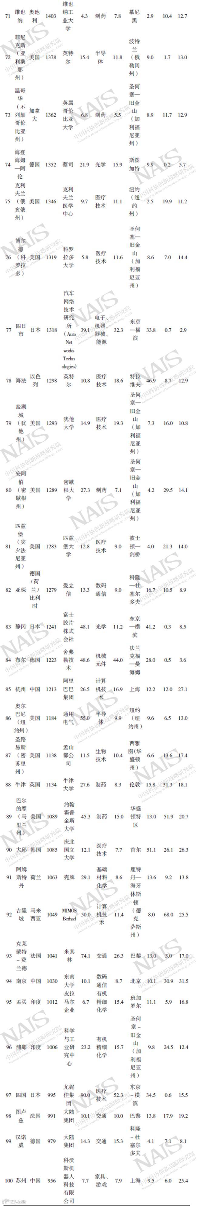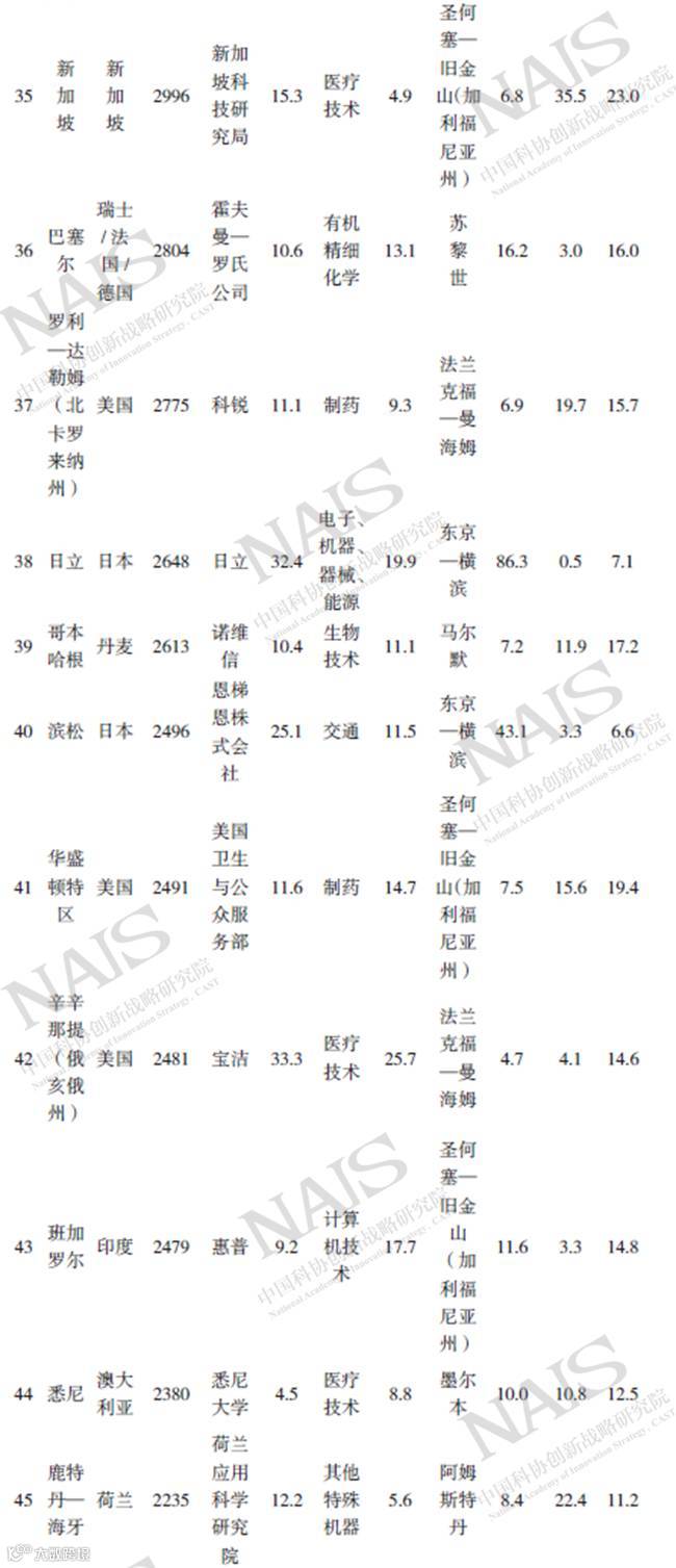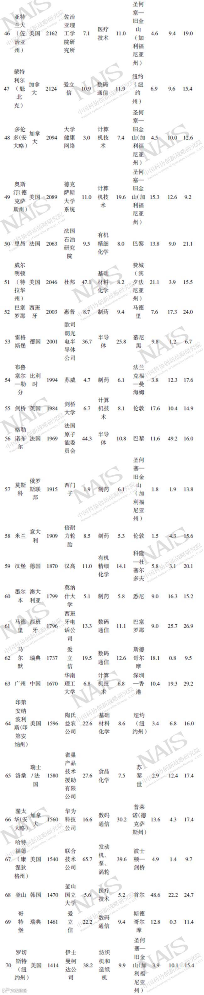 表1 世界发明创新集群排名及特点