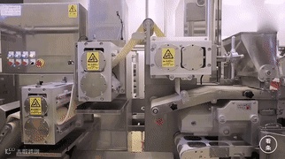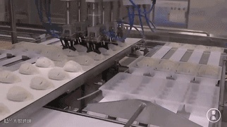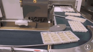 柔软的气动抓手,连特别柔软的饺子都能安全抓起,而且从抓取到安放都定位精准: