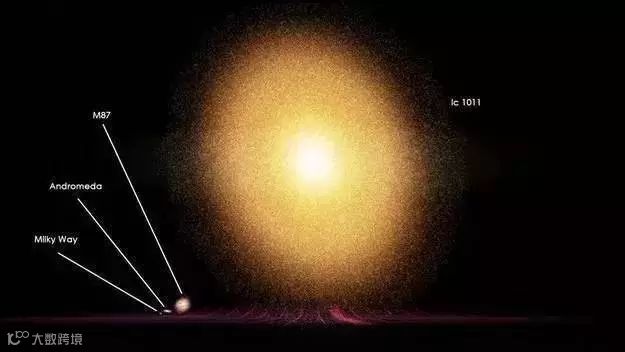 (左到右)银河系、仙女座星系 、室女A星系、IC-1011星系