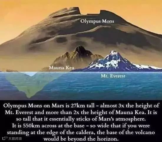 若把火星上头的奥林帕斯山拿来跟地球的高山来比较的话,地球上的高山好像就是小儿科啊。