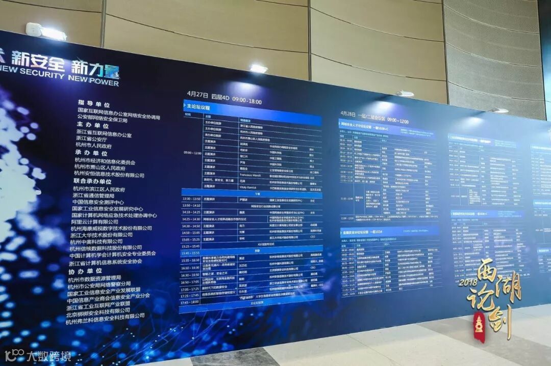 由浙江省互联网信息办公室、浙江省公安厅、杭州市人民政府联合主办,杭州市经济和信息化委员会、杭州市萧山区人民政府、杭州安恒信息技术股份有限公司共同承办、杭州中奥科技有限公司联合承办的“西湖论剑 · 网络安全大会”,2018年4月26日在杭州国际博览中心成功举办!