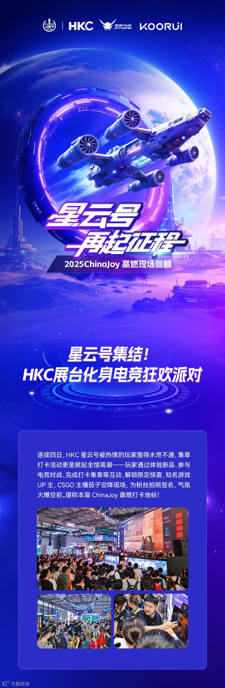 ChinaJoy 2025的HKC展台,不仅以HKC GS27QTS等新品彰显了品牌的科技实力,更通过妙趣横生的互动与精彩舞台表演,让用户亲身感受显示技术的魅力。从产品区的专注探索,到互动区的欢声笑语,再到舞台前的热血沸腾,HKC成功将一场展会升华为玩家社群的狂欢节。展会虽落幕,但HKC星云号所点燃的电竞热情,依然在每一位参与者心中燃烧。