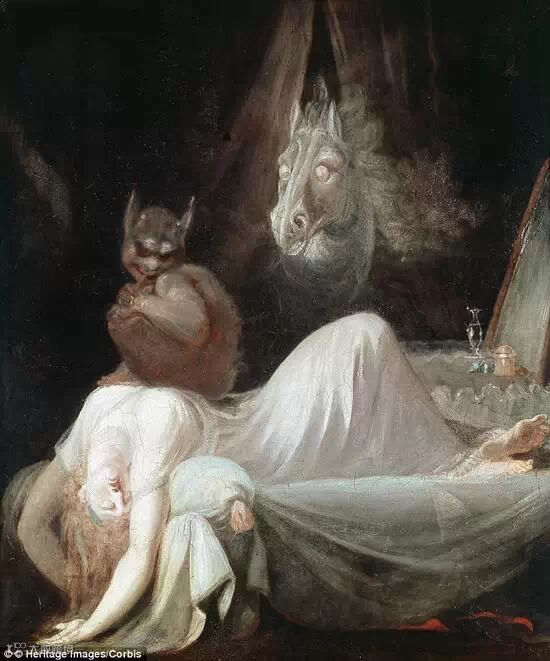 1790年前后的一幅艺术概念图,由英裔瑞士画家亨利弗瑟利创作,名为“噩梦”。