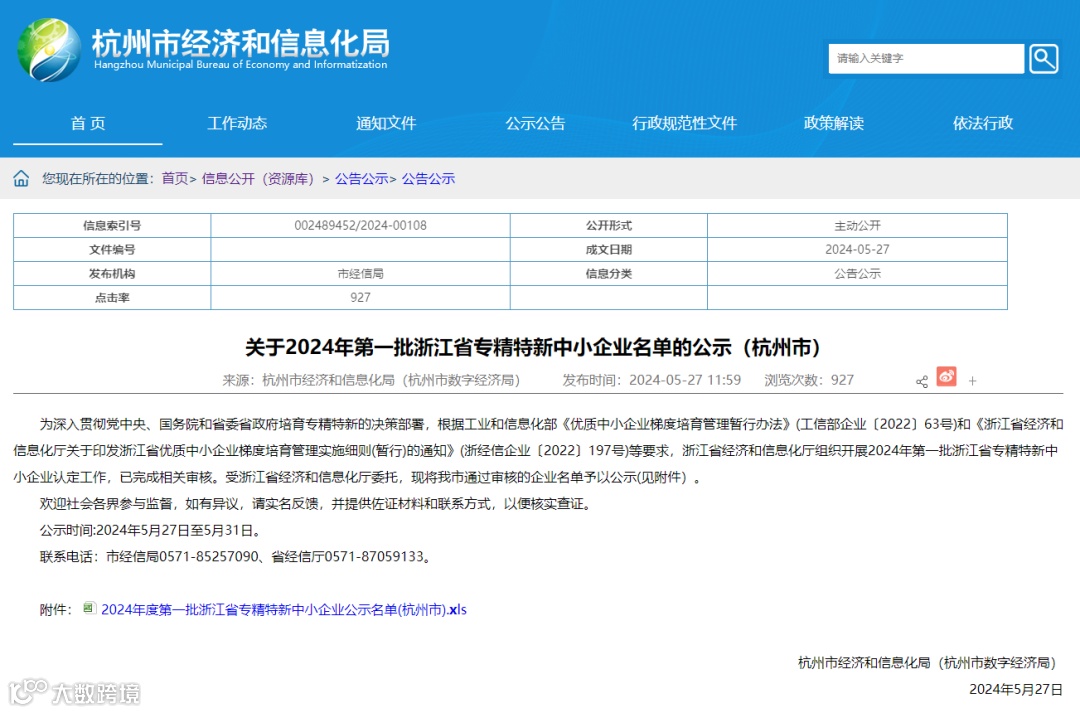近日,杭州市经济和信息化局公布了2024年度第一批浙江省专精特新中小企业名单,倚澜科技荣登榜单。