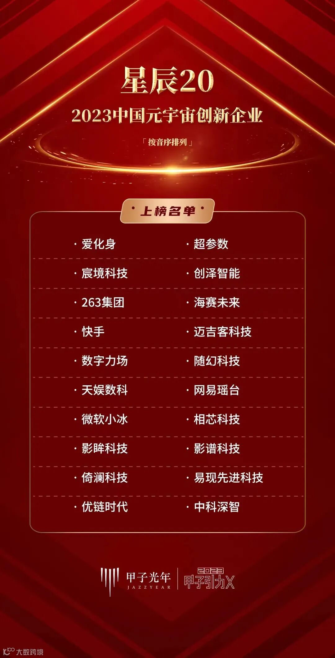 为了表彰在AI领域中取得卓越成就的公司与机构,甲子光年在峰会现场颁布了「星辰20创新企业」与「2023中国最活跃AIGC投资机构」两类榜单,分别表彰AIGC时代背景下,创新企业及投资机构的杰出贡献者。