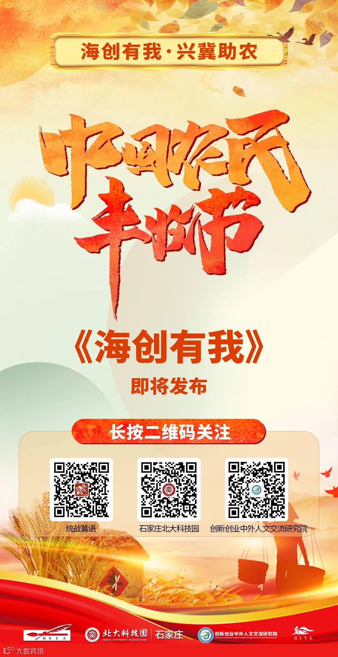 石家庄北大科技园充分发挥人才汇聚的优势,联合来自韩国、加拿大、新加坡、美国、英国、俄罗斯、澳大利亚、德国、乌克兰、马来西亚、越南等30余个国家的归国代表,通过形象代言、微信平台宣传等形式助力中国农民丰收节,此次活动将发挥海归高端人才振兴乡村的科技引领作用,推动农业农村科技服务与特色产业发展,为推进乡村振兴和加快农业农村现代化提供科技支撑和人才保障。