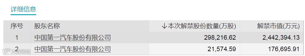 在下周面临解禁的44只股票中,解禁市值最大的一汽解放解禁股东均为中国第一汽车股份有限公司,为一汽解放第一大股东,其中29.82亿股为2020年4月实施的定向增发股份,彼时一汽解放的定增发行价为6.68元/股。